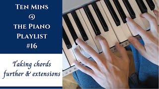 ID: PQo5yxBhx68 Title: Ten Mins @ The Piano - Part 16 Subtitle: Taking Chords Further | In-octaves and Extensions Theme Codes: ;tenlessons; Sort: 16 Published: 2017-05-19 VOD day: 0000-00-00 | https://i.ytimg.com/vi/PQo5yxBhx68/hqdefault.jpg?sqp=-oaymwEiCKgBEF5IWvKriqkDFQgBFQAAAAAYASUAAMhCPQCAokN4AQ==